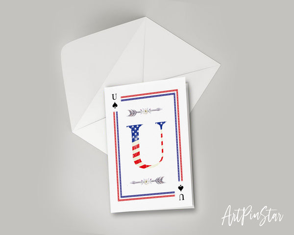 American Flag Letter U Spade Monogram Note Cards