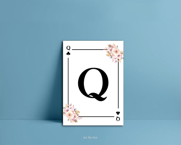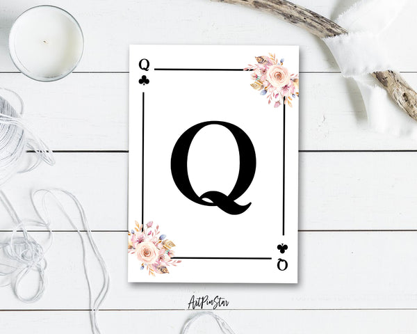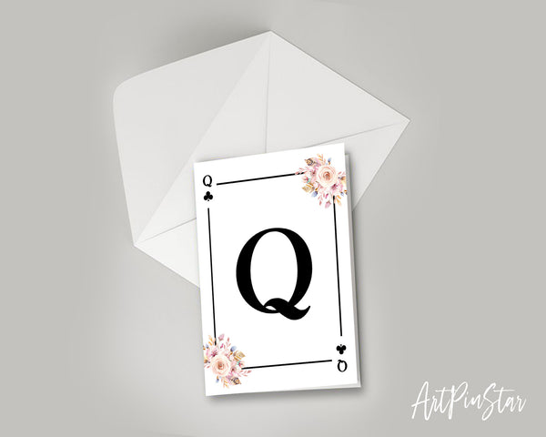 Boho Floral Bouquet Initial Flower Letter Q Clover Monogram Note Cards