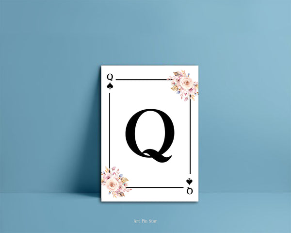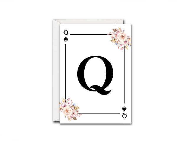 Boho Floral Bouquet Initial Flower Letter Q Spade Monogram Note Cards