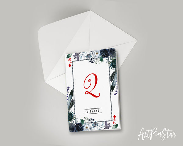 Watercolor Floral Flower Bouquet Initial Letter Q Diamond Monogram Note Cards