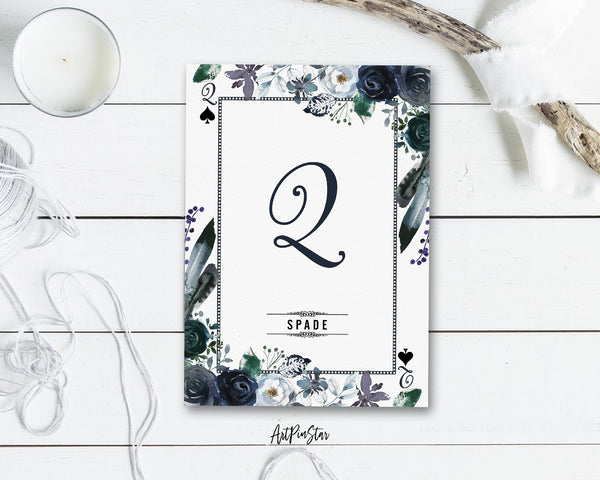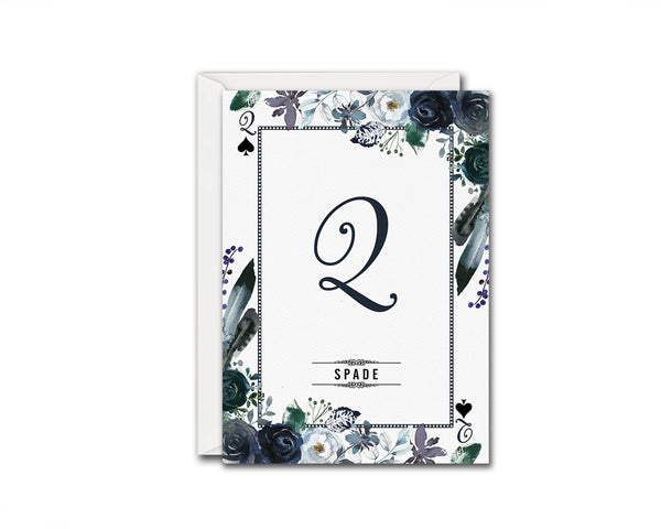 Watercolor Floral Flower Bouquet Initial Letter Q Spade Monogram Note Cards