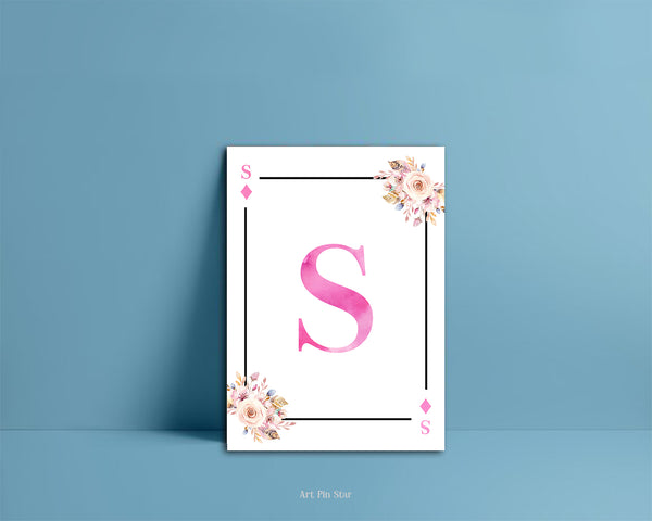 Boho Floral Bouquet Initial Flower Letter S Diamond Monogram Note Cards