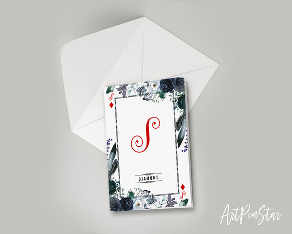 Watercolor Floral Flower Bouquet Initial Letter S Diamond Monogram Note Cards
