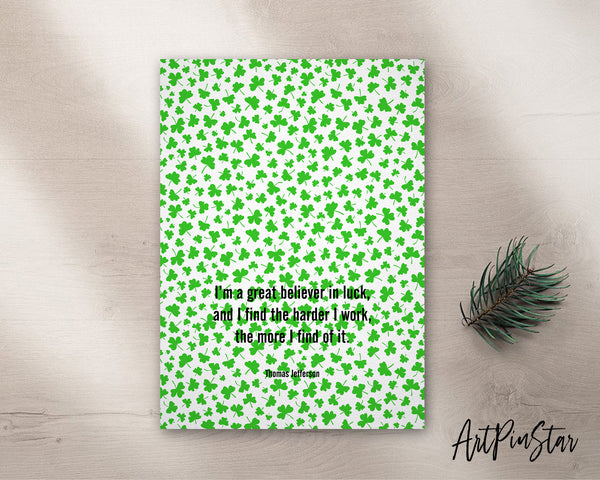 I’m a great believer in luck-Thomas Jefferson St. Patricks Day Personalized Gifts Card - ArtPinStar.com