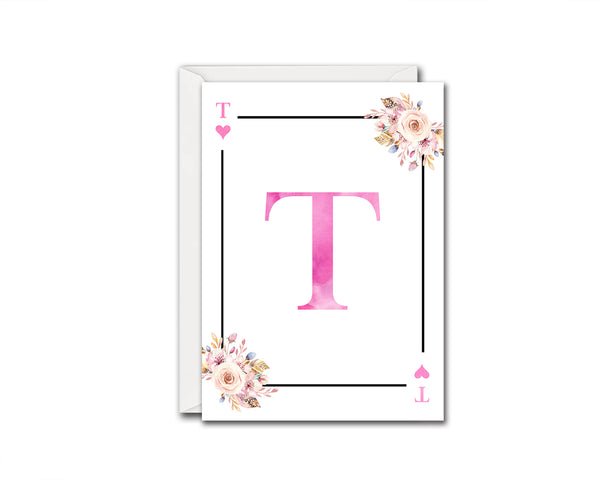 Boho Floral Bouquet Initial Flower Letter T Heart Monogram Note Cards