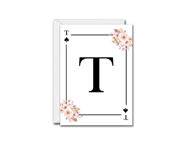 Boho Floral Bouquet Initial Flower Letter T Spade Monogram Note Cards
