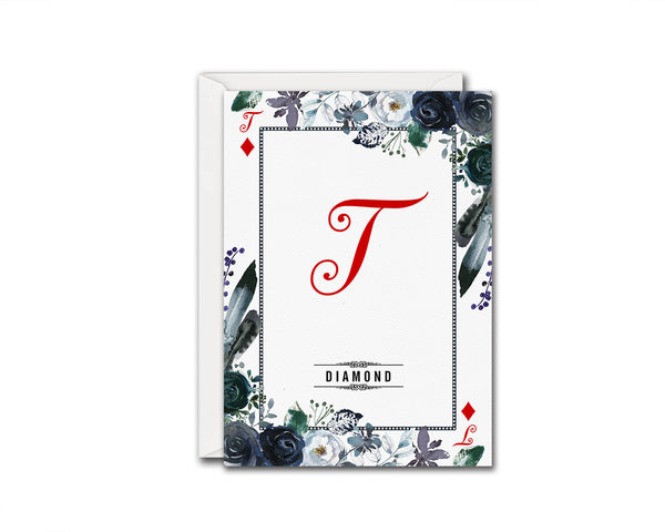 Watercolor Floral Flower Bouquet Initial Letter T Diamond Monogram Note Cards