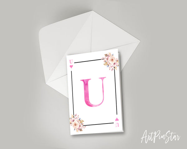 Boho Floral Bouquet Initial Flower Letter U Heart Monogram Note Cards