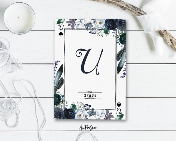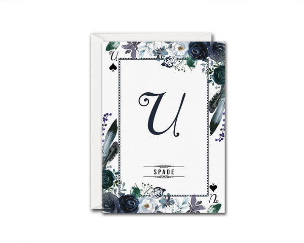 Watercolor Floral Flower Bouquet Initial Letter U Spade Monogram Note Cards
