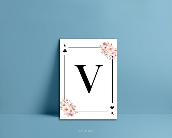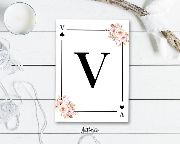 Boho Floral Bouquet Initial Flower Letter V Clover Monogram Note Cards