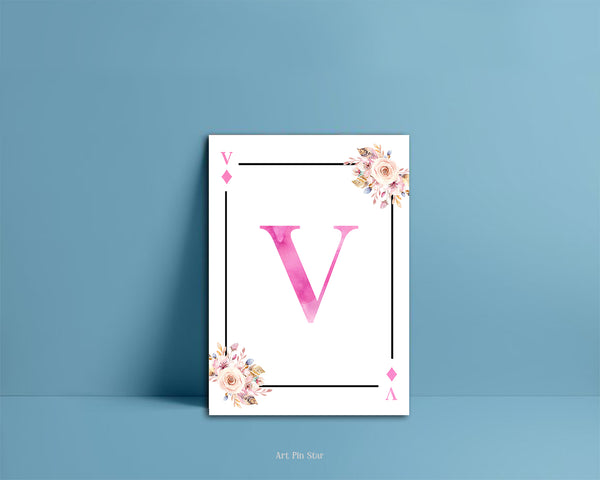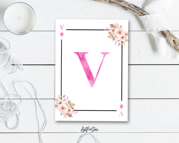 Boho Floral Bouquet Initial Flower Letter V Diamond Monogram Note Cards