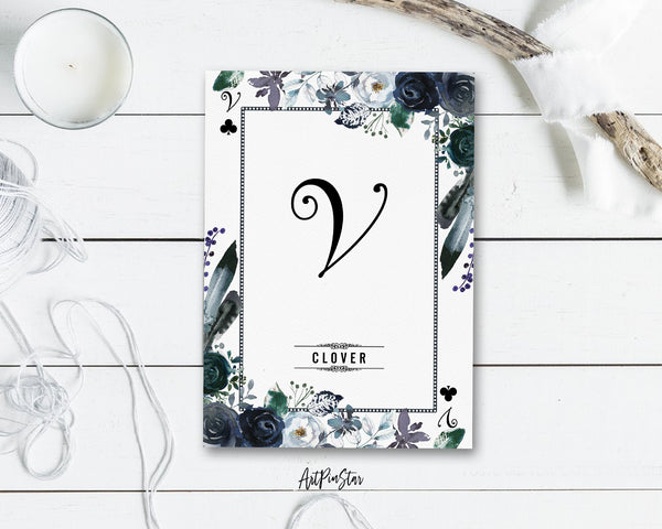 Watercolor Floral Flower Bouquet Initial Letter V Clover Monogram Note Cards
