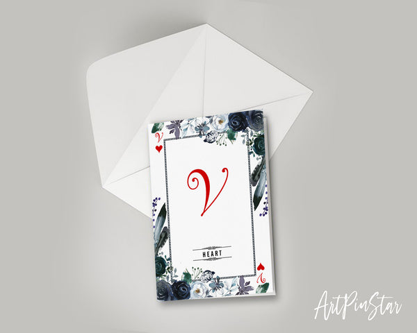Watercolor Floral Flower Bouquet Initial Letter V Heart Monogram Note Cards