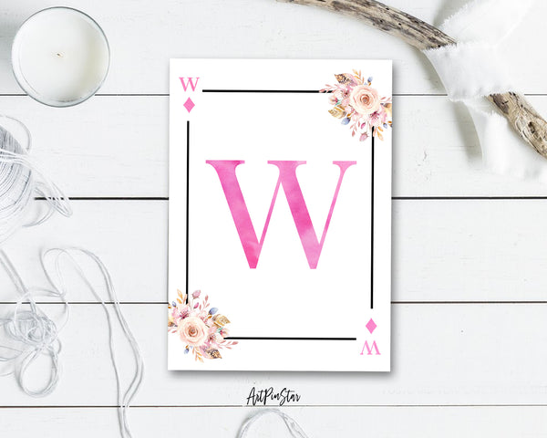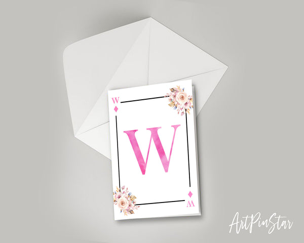 Boho Floral Bouquet Initial Flower Letter W Diamond Monogram Note Cards