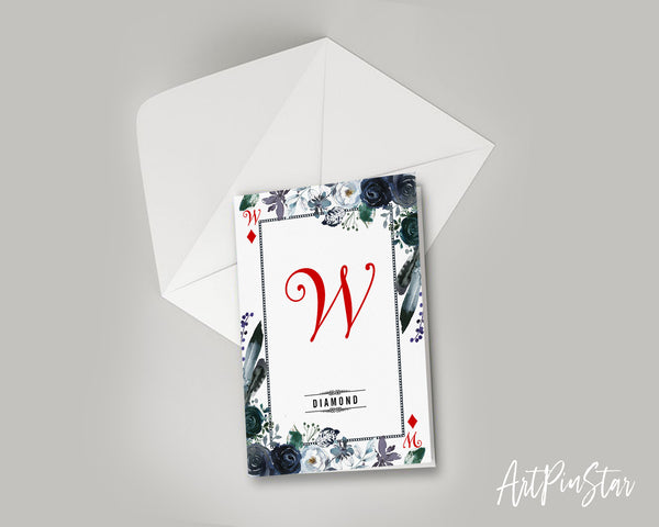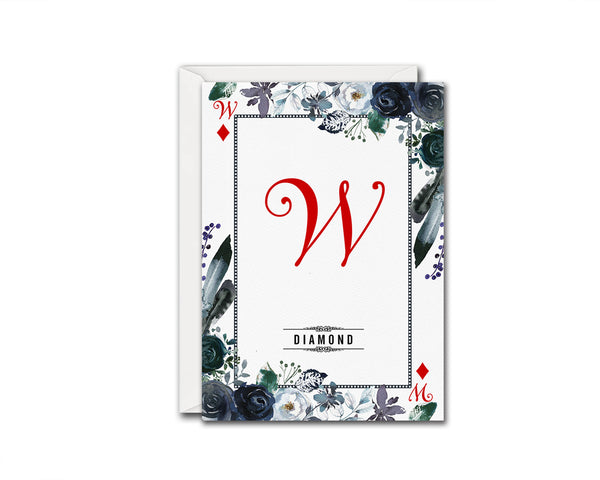 Watercolor Floral Flower Bouquet Initial Letter W Diamond Monogram Note Cards