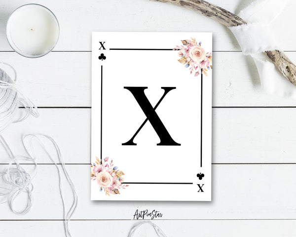 Boho Floral Bouquet Initial Flower Letter X Clover Monogram Note Cards