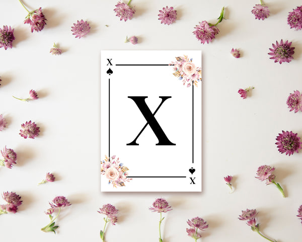 Boho Floral Bouquet Initial Flower Letter X Spade Monogram Note Cards