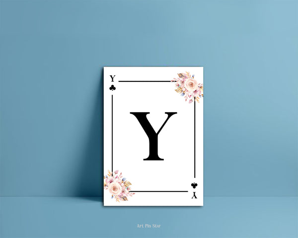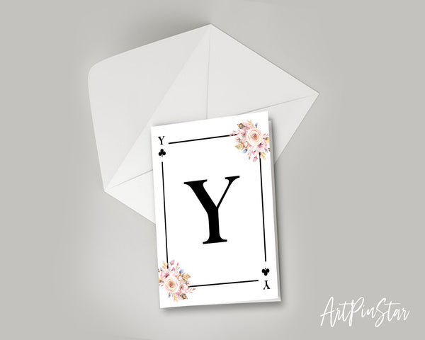 Boho Floral Bouquet Initial Flower Letter Y Clover Monogram Note Cards