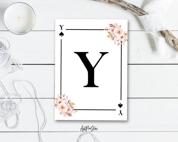 Boho Floral Bouquet Initial Flower Letter Y Spade Monogram Note Cards